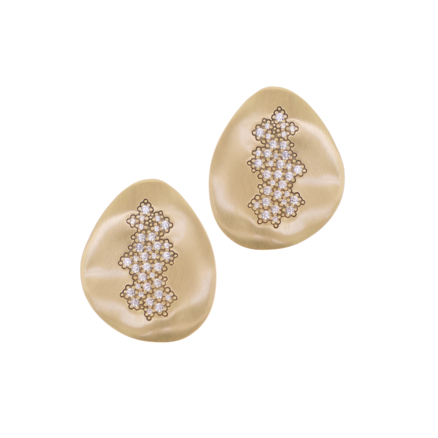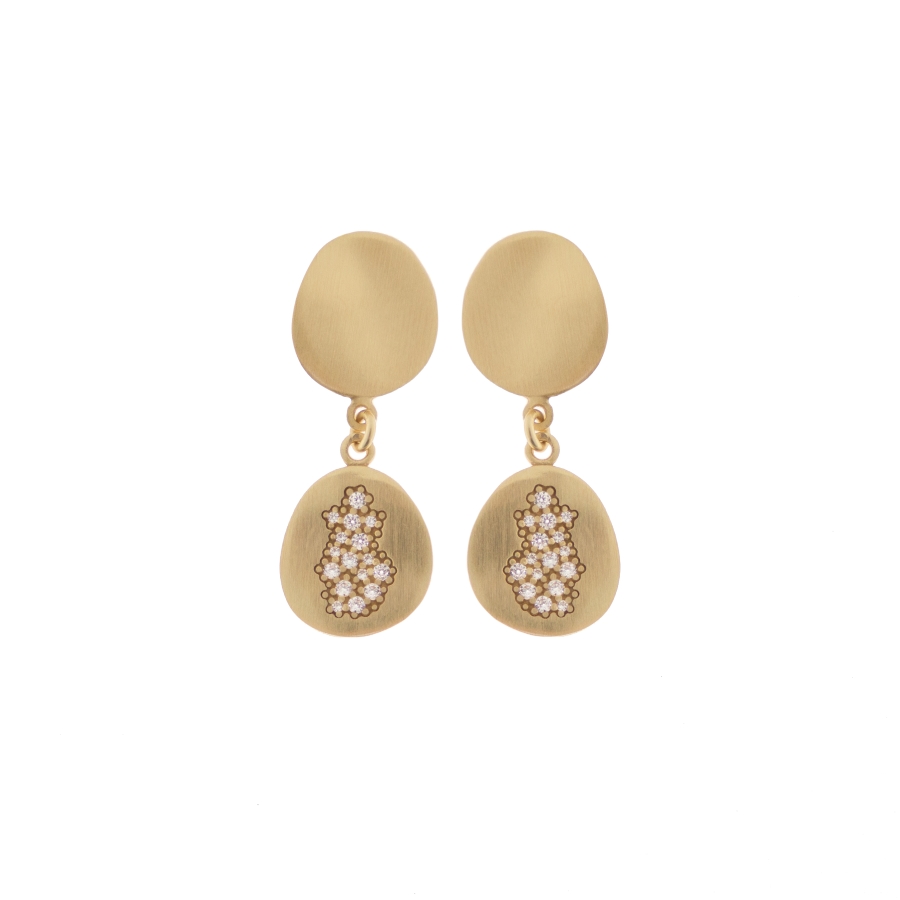 A new collection that enhances the micro-cast elements in the shape of a leaf with hand brushing and with white zircon pavé. The 23 carat gold plating together with the hand satin finish that characterizes all our jewels, makes this classic taste line even more “warm”.