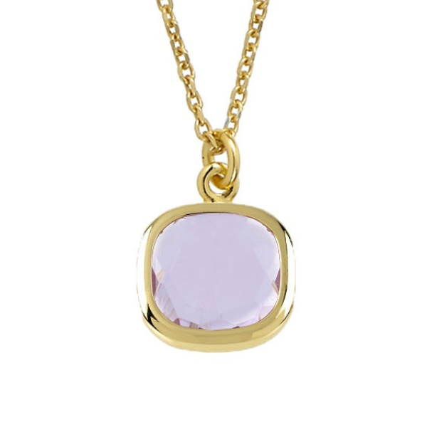 Necklace with 12×12 mm glass paste pendant available in different colours