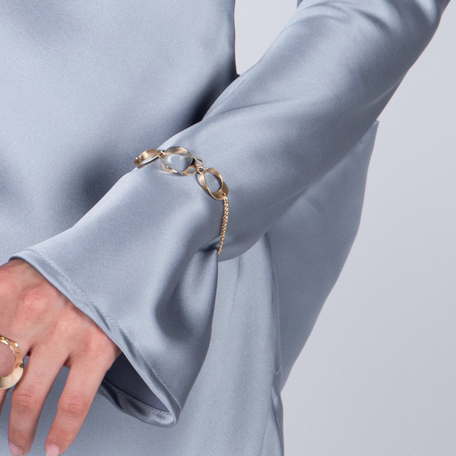 A cleverly twisted plate creates reflections of glittering light that are emphasized by polishing or brushing the surfaces.