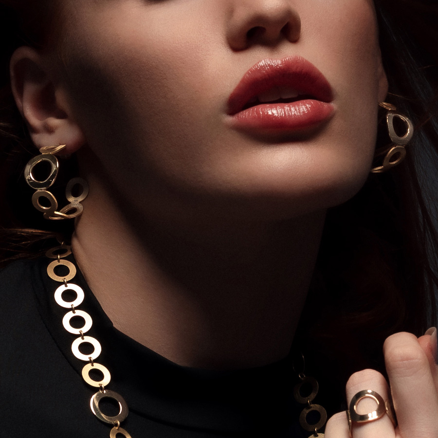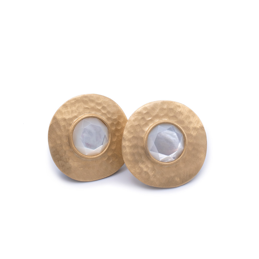 Nuova Retrò earrings with round mother of pearl and hammered brushed surface