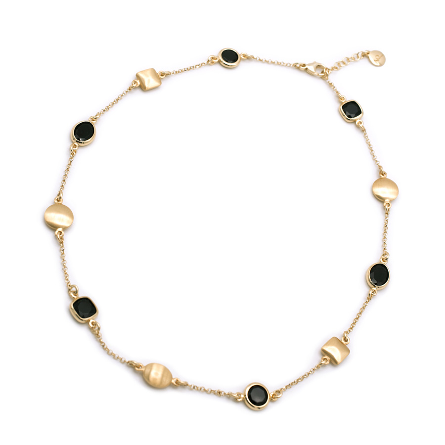 Mignon necklace with brushed dice elements and mother of pearl charms