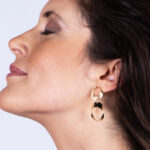 Dangling earrings with two elements , brushed and polished in 23 ct.yellow gold-plated AG 925‰
