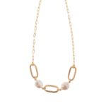 Perle Chic necklace with baroque pearls ,oval brushed elements and chain