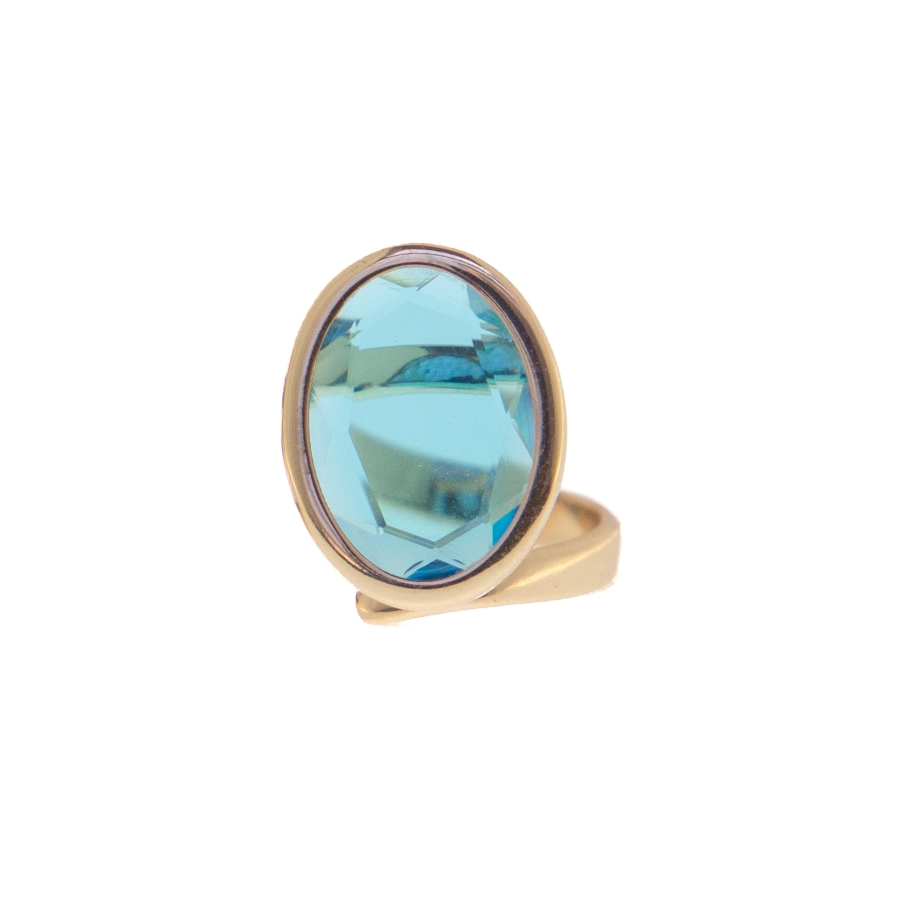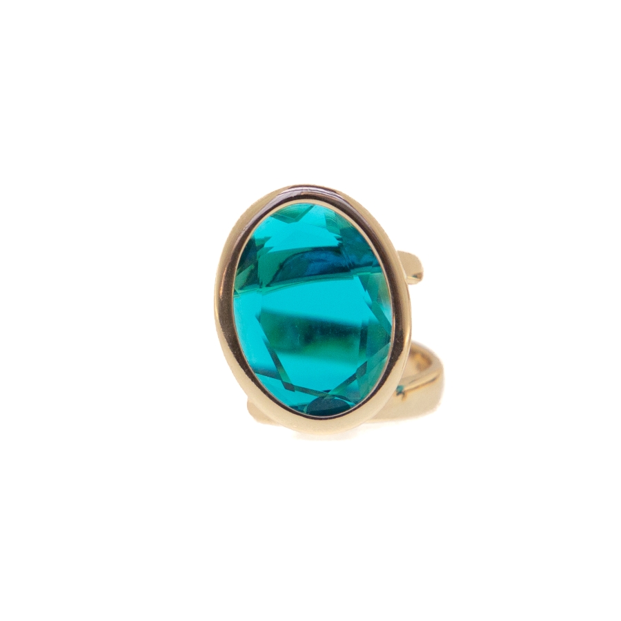 Anello Caramelle Marine Ovali con pasta vitrea orizzontale color petrolio chiaro