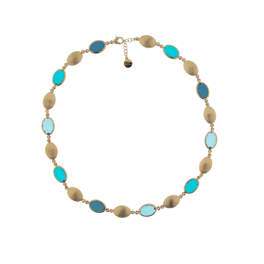 Collana girocollo Caramelle Marine Ovali con paste vitree ovali nei toni del petrolio