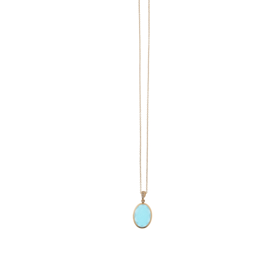 Collana Caramelle Marine Ovali con pendente in pasta vitrea ovale color petrolio chiaro