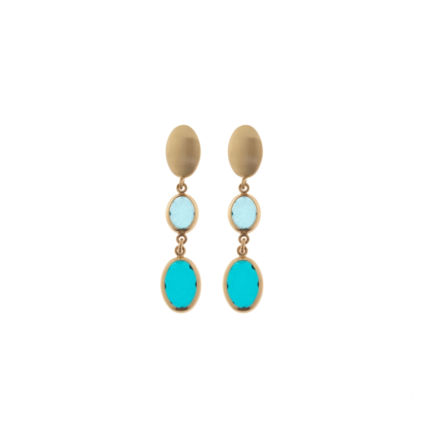 Le classiche “caramelle” ovali , proposte di recente, si vestono ora dei toni del mare: azzurro trasparente, azzurro milky, petrolio chiaro e petrolio scuro, sapientemente mixati per creare dei gioielli che si faranno notare.