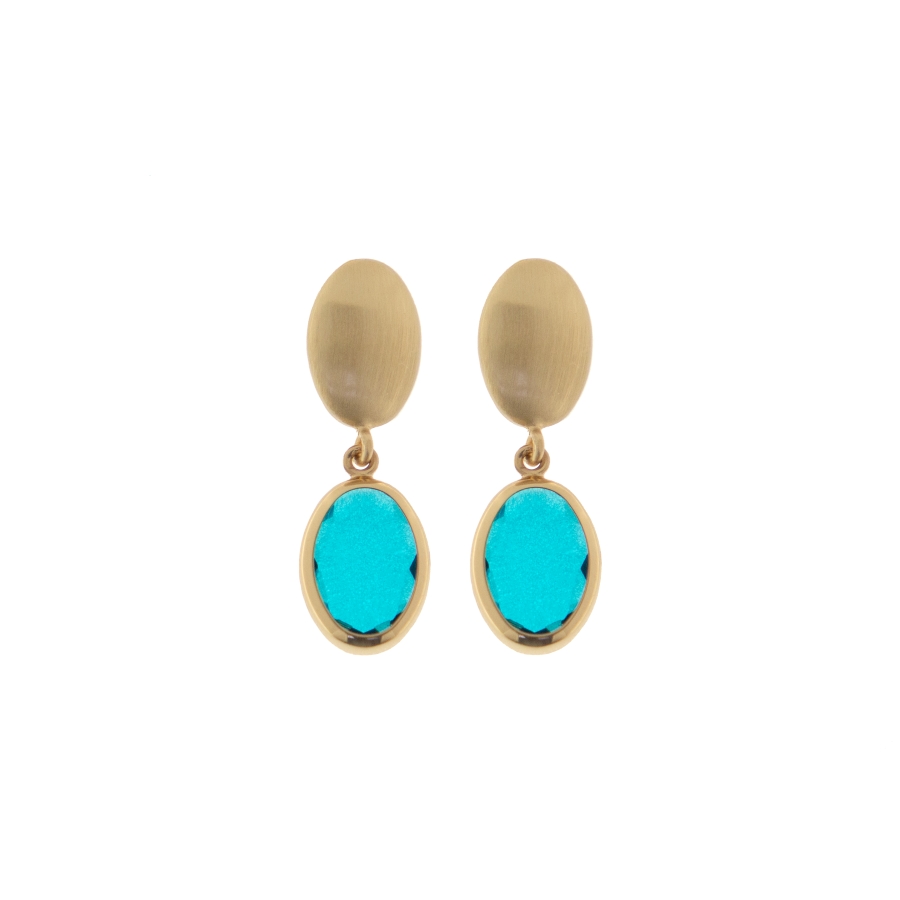 Orecchini pendenti Caramelle Marine Ovali con due paste vitree nei toni del petrolio