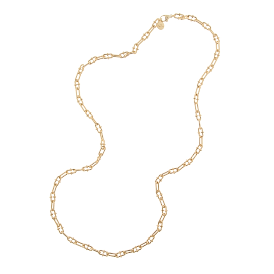 Passione catene: accessorio immancabile, raffinato e sempre di tendenza. Collane, orecchini e braccilai sono costituiti da ampi elementi fusi dalle forme e dalle lunghezze diverse, uniti tra loro da leggere catene o contromaglie.