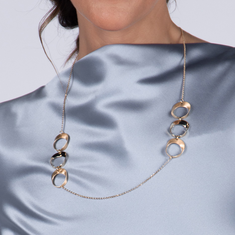 Collezione innovativa, voluminosa e tridimensionale, totalmente realizzata in argento placcato oro 23 carati, il cui design è stato realizzato grazie ad elevate competenze artigianali e coperto da deposito in Italia e in Europa.
