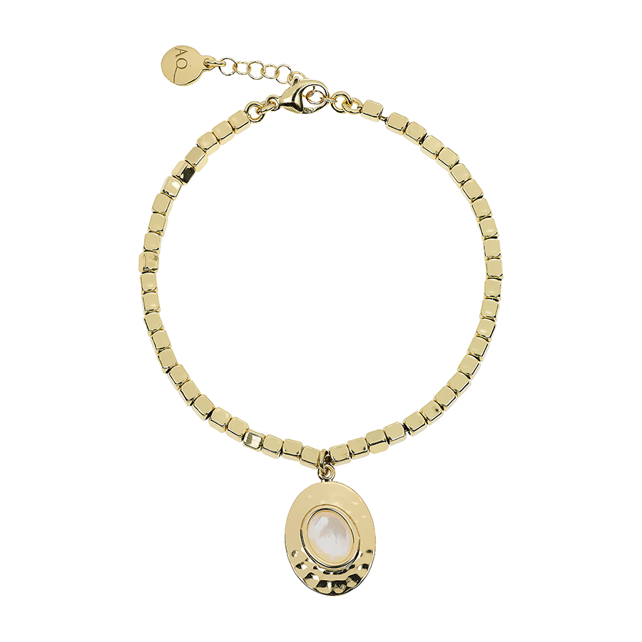 Bracciale Nuova Retro con dadini infilati su catena e charm ovale con madreperla