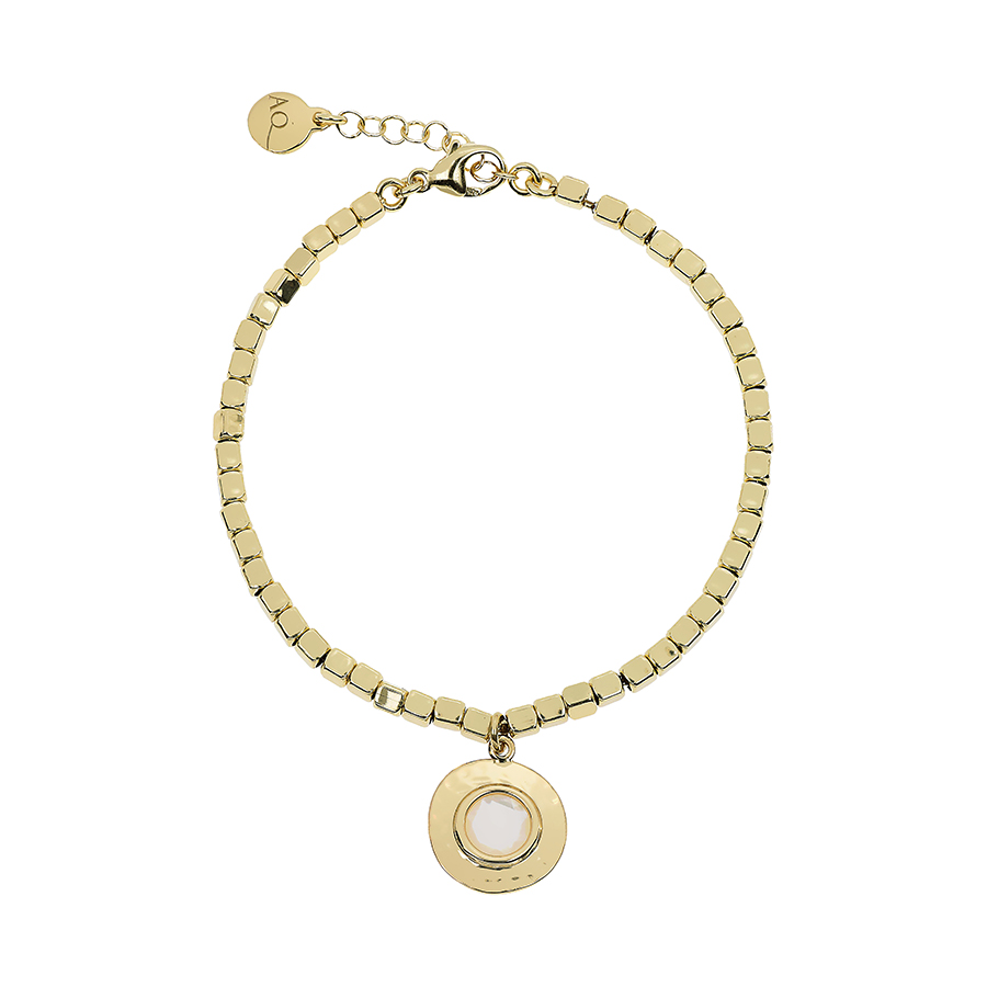 Bracciale Nuova Retro con dadini infilati su catena e charm tondo con madreperla