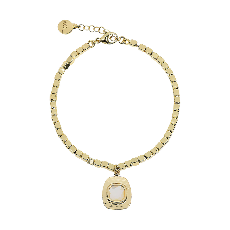 Bracciale Nuova Retro con dadini infilati su catena e charm a trapezio con madreperla