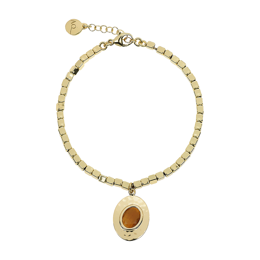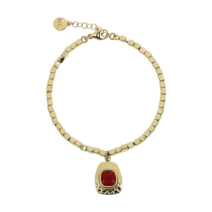 Bracciale Nuova Retro con dadini infilati su catena e charm a trapezio con corniola