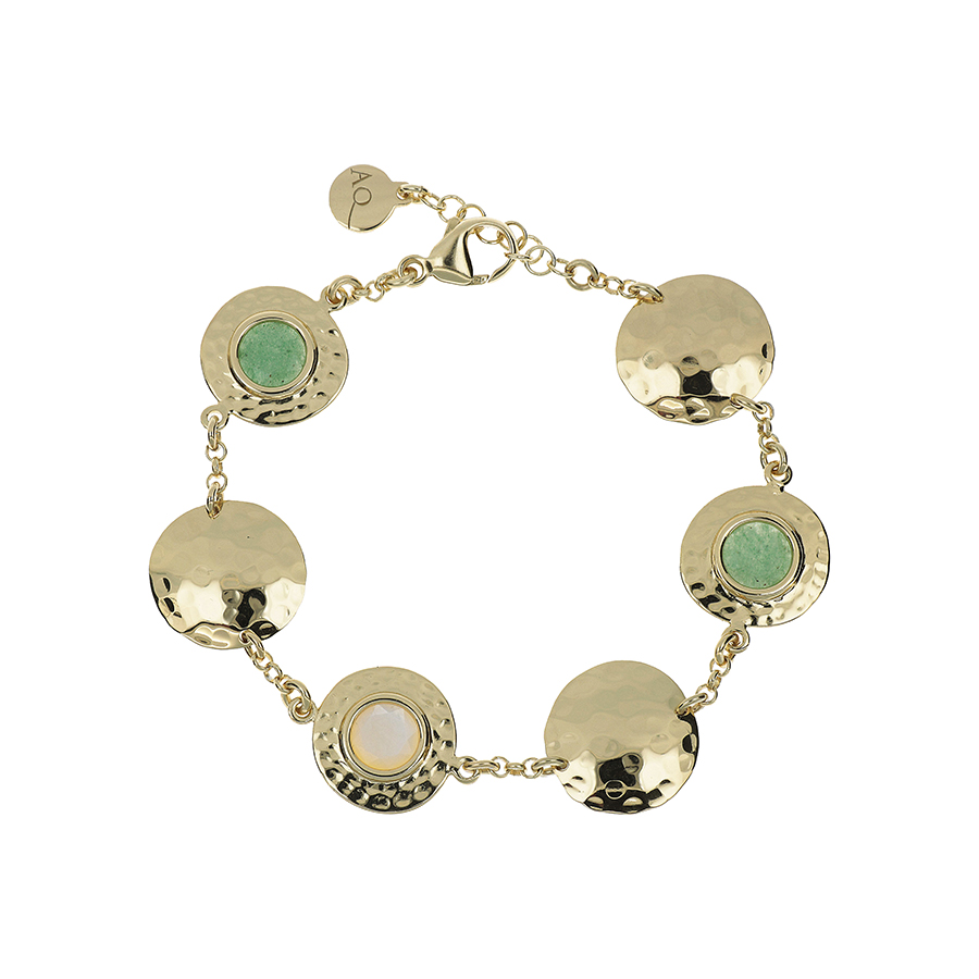 Bracciale Nuova Retrò con elementi tondi battuti, madreperla e avventurina