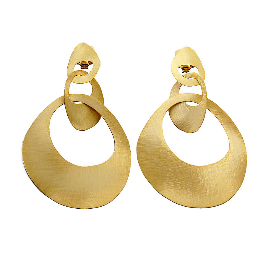 Orecchini a lastra Vintage con due elementi ovali irregolari spazzolati