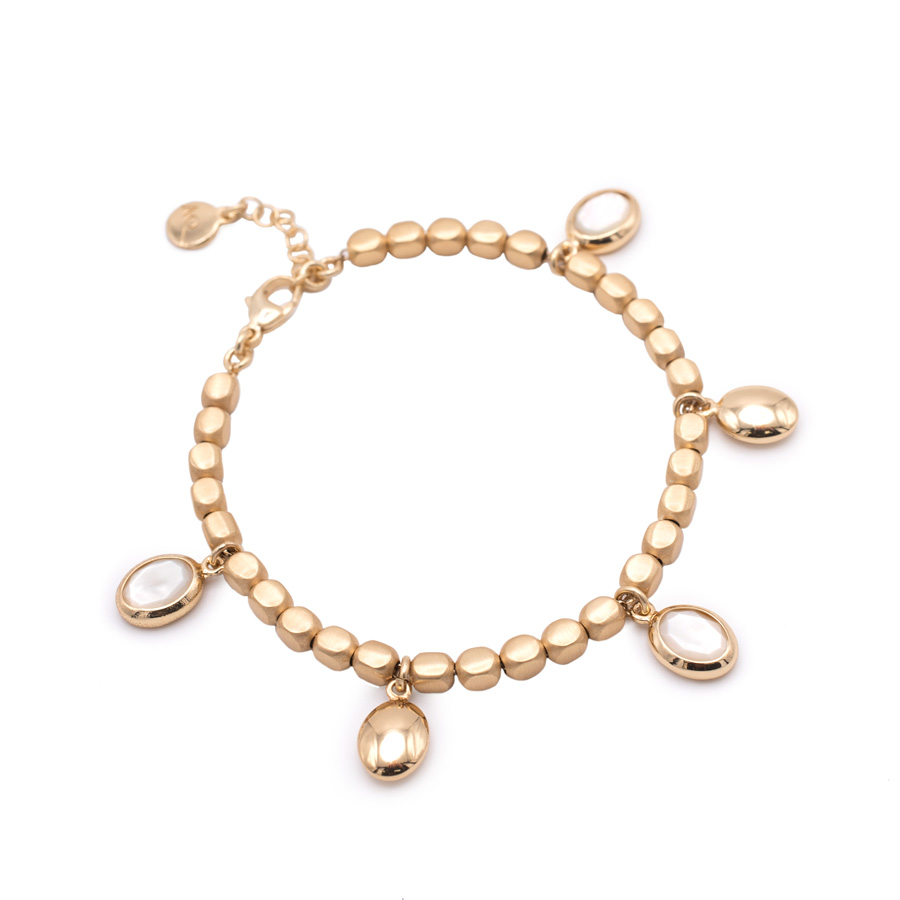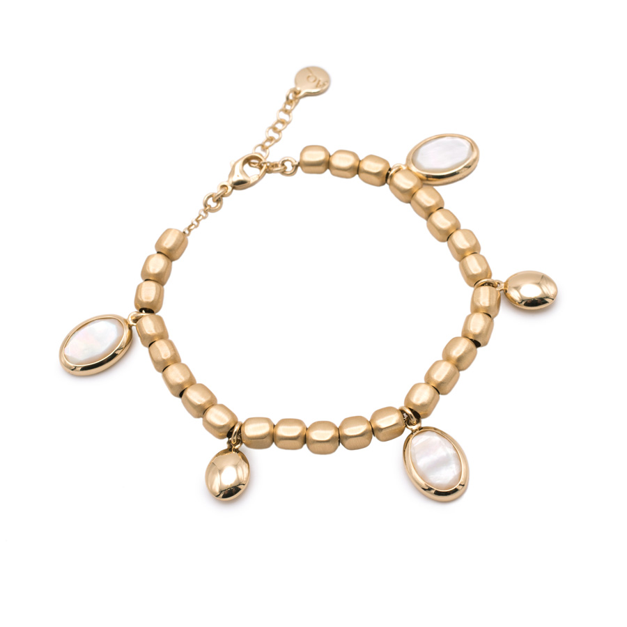 Bracciale Mignon con cubetti spazzolati a mano da 4mm e charms in madreperla ovali