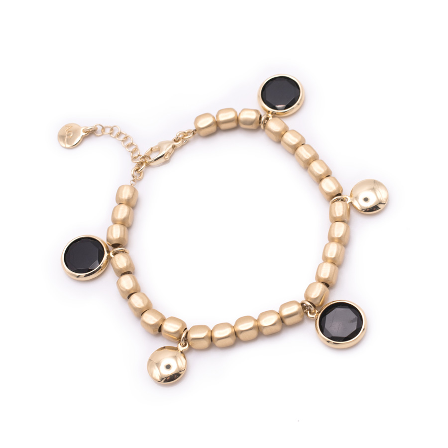 Bracciale Mignon con cubetti spazzolati a mano da 4mm e charms tondi neri