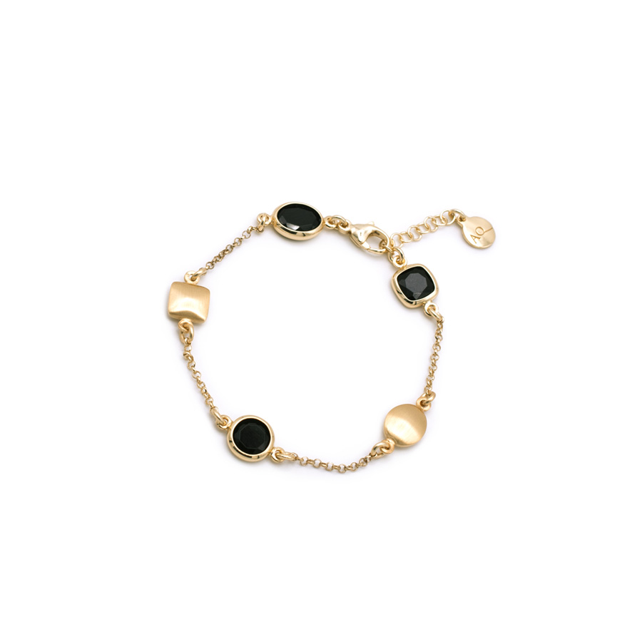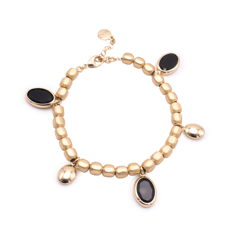 Bracciale Mignon con cubetti spazzolati a mano da 4mm e charms ovali neri