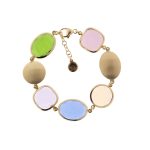 Bracciale con paste vitree di varie forme e vari colori in argento 925‰ placcato oro giallo 23kt.