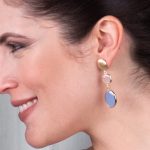Orecchini pendenti con paste vitree rosa e blu milky in argento 925‰ placcato oro giallo 23kt.