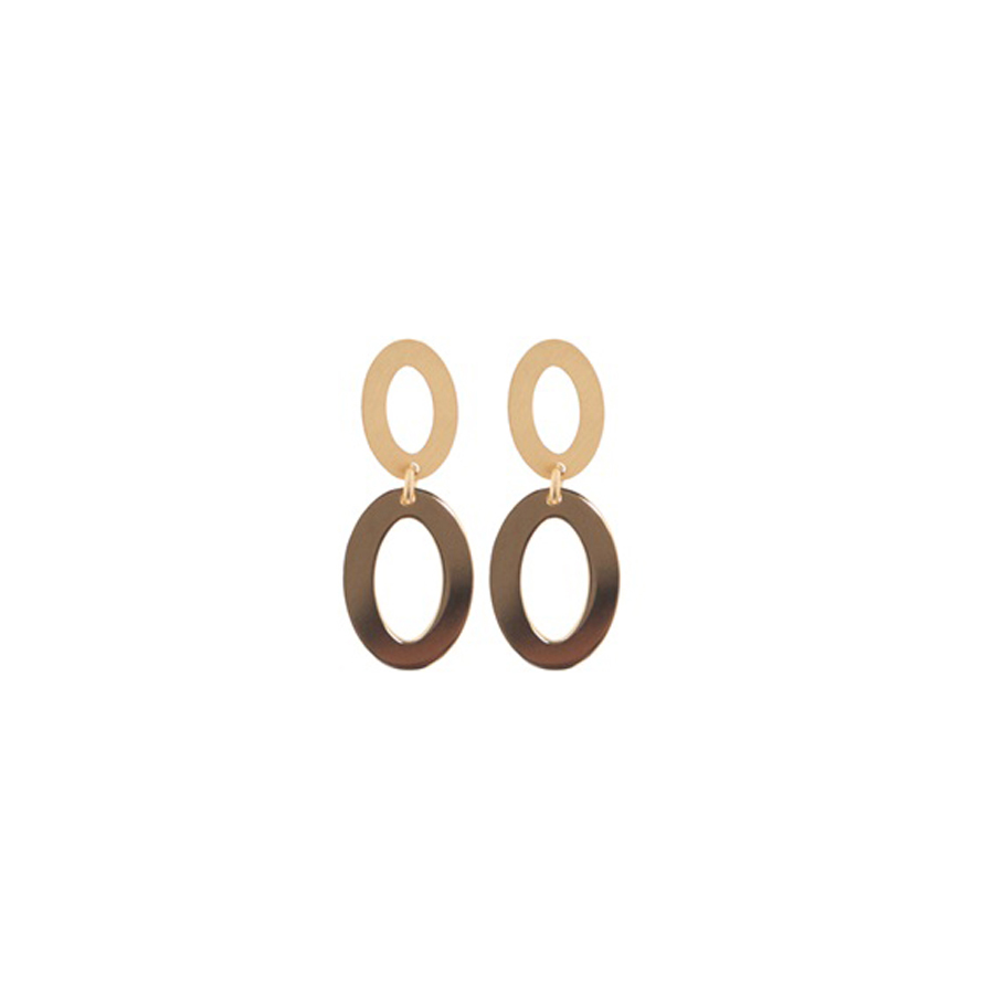Orecchini con due elementi ovali in argento 925‰ placcato oro giallo 23kt.